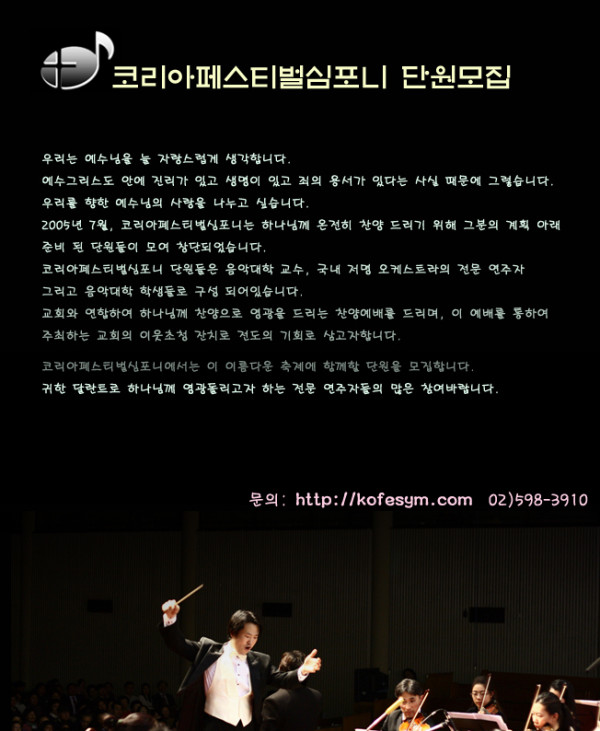 선교 오케스트라 Korea Festival Symphony 에서 단원을 모집합니다.