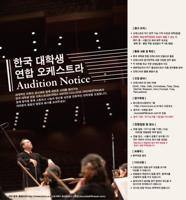 2011년 하반기 한국 대학생 연합 오케스트라 단원모집 공고