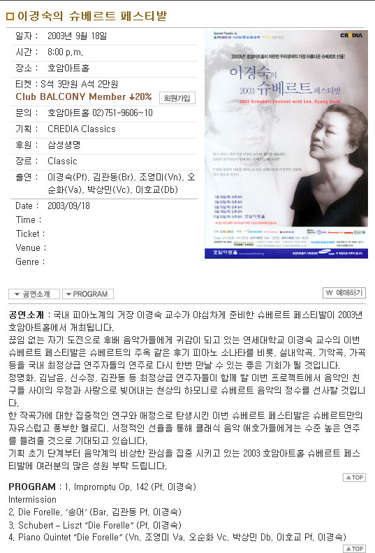 오는 9월18일 8시 호암아트홀에서 "이경숙의 슈베르트 페스티발" 연주회가 열립니다.